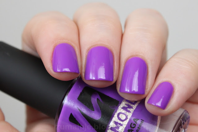 nail polish brand Maga has many various finishes of polishes in their offer, but I wanted to try out also some more classical and standard polish, so that's why today I'm gonna show you purple creme shade 10L. well, this shade is maybe not so classic and toned, but it's a creme after all ;) 10L is a vivid and bright purple, you can say it's almost neon shade. colors like this often has quite sheer consistency and free edge of nails are visible. it's definitely not this case. this polish definitely isn't a onecoater though - it needs two coats for full opacity. when you apply it, there is a lot of polish on brush, but while painting first coat, you can think that this polish doesn't have good coverage. but second layer of polish gives full opacity. I really like this shade it's very energetic and when I look at my nails, I can feel spring in the air! I know that not everyone likes purple, but this one is awesome :)