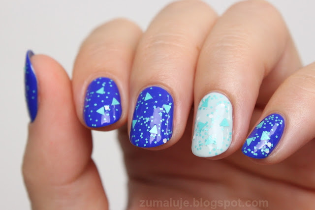 next is glitter top called What's a big teal. it's a glitter topper which has in it blue matte triangles (!) I don't know, maybe I'm wrong (if so, please let me know), but I think it's the first ever triangle glitter on Polish polish market (I'm not counting indie brands of course). I literally love triangle glitter since forever and I'm really glad orly has such polish in their offer now :)